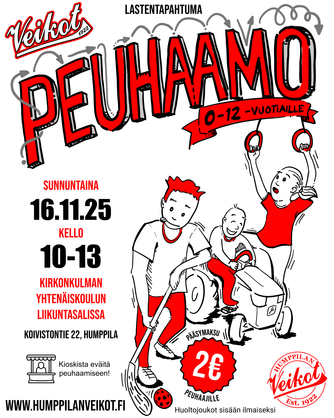 ✨PEUHAAMO 16.11.2025 klo 10-13✨ Kirkonkulman yhtenäiskoulun liikuntasaliEli hypitään, pompitaan, pelaillaan, juostaan, roikutaan ja temppuillaan! Ja tietenkin nautitaan kioskin maittavista herkuista! |